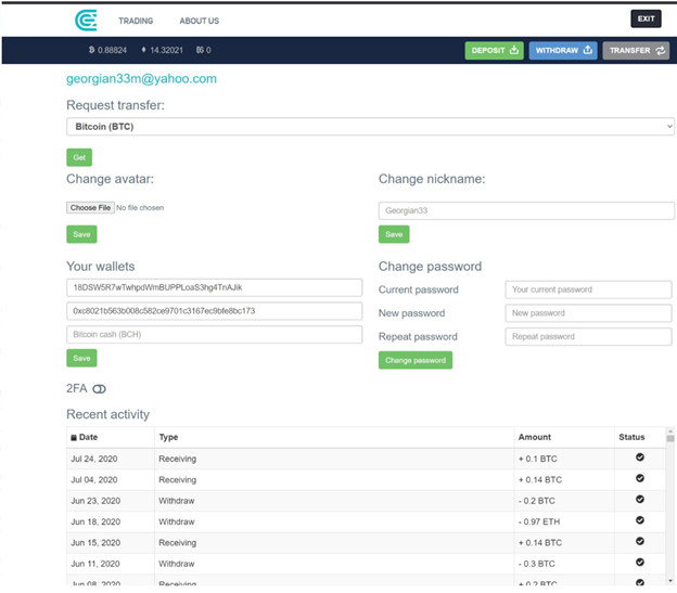 Due to the belief that nobody is that careless I have decided to manually logon onto the website with the given credentials, to my surprise no 2FA was requested and I successfully logged on and encountered a BTC wallet with overall 0.88BTC (est 9,850 USD as for today):