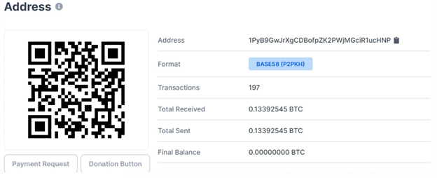 Further digging into the blockchain history shows that 0.133 BTC was sent to&from this wallet (197 transactions overall):