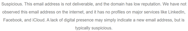 6. The support email address is (obviously) not deliverable and lacks any digital footprint:
